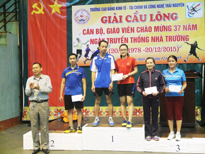 Ảnh : Đồng chí Nguyễn Ngọc Sáng-Phó hiệu trưởng, chủ tịch công đoàn trao giải thưởng cho các đội lãnh đạo.
