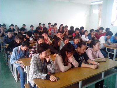Lưu học sinh Lào đang ngồi nghe phổ biến nội quy nội trú