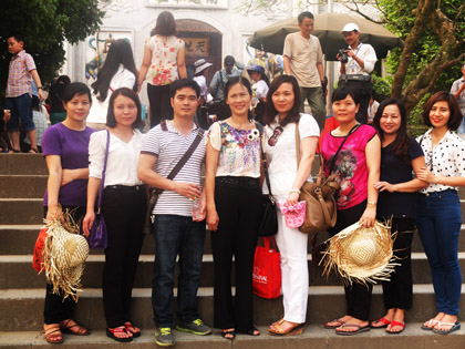 Ảnh : Đoàn cán bộ, đảng viên tham gia dâng hương chiều 18-4-2015 tại đền thượng