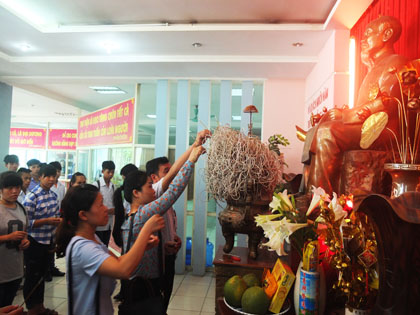 Ảnh : Đoàn đến dâng hương trước tượng Bác Hồ.