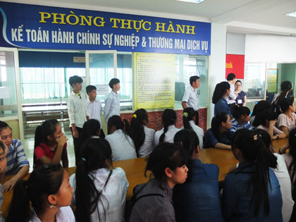 Ảnh : Đoàn thăm các phòng thực hành nghiệp vụ Kế toán, Tài chính.