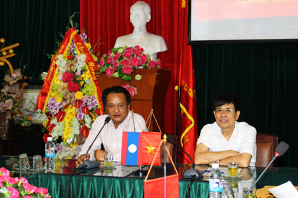 Đoàn cán bộ lãnh đạo Sở Giáo dục-Thể thao tỉnh Khăm Muộn nước CHDCND Lào thăm và làm việc với lãnh đạo trường CĐ Kinh tế-Tài chính Thái Nguyên.