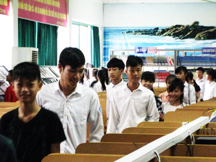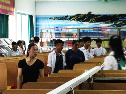 Ảnh : Các bậc phụ huynh và các em học sinh thăm phòng đọc tự chọn của TT thư viện.