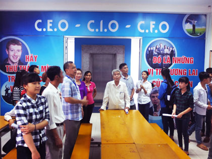 Sau khi nghe tư vấn, đoàn đã được thày giáo Nguyễn Ngọc Sáng cùng các cộng sự đẫn đi thăm cơ sở vật chất của nhà trường như ký túc xá, nhà ăn sinh viên, thư viện, các trung tâm đào tạo ngoại ngữ, đào tạo nghề…