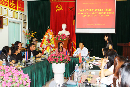 Đoàn giáo viên và sinh viên các trường Cao đẳng nghề thuộc vương quốc Thái Lan sang công tác tại trường CĐ Kinh tế-Tài chính Thái Nguyên.