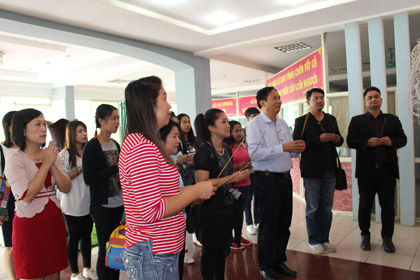 Ảnh : Đoàn bạn thắp hương tưởng niêm Chủ tịch Hồ Chí Minh.
