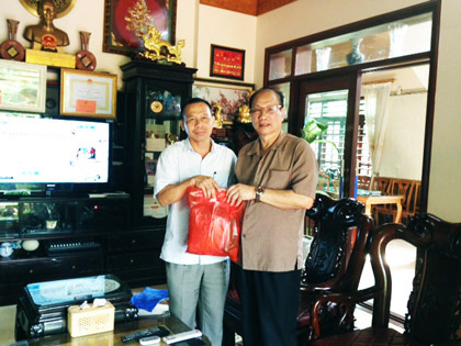 Ảnh : Đồng chí Nguyễn Công Dương-Bí thư Đảng ủy, Hiệu trưởng nhà trường thăm và tặng quà một gia đình tại thị trấn Đu, Huyện Phú Lương, Thái Nguyên.