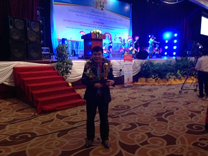 Ảnh: Thầy giáo Nguyễn Công Dương đang nhận Giải thưởng tại Lễ trao giải