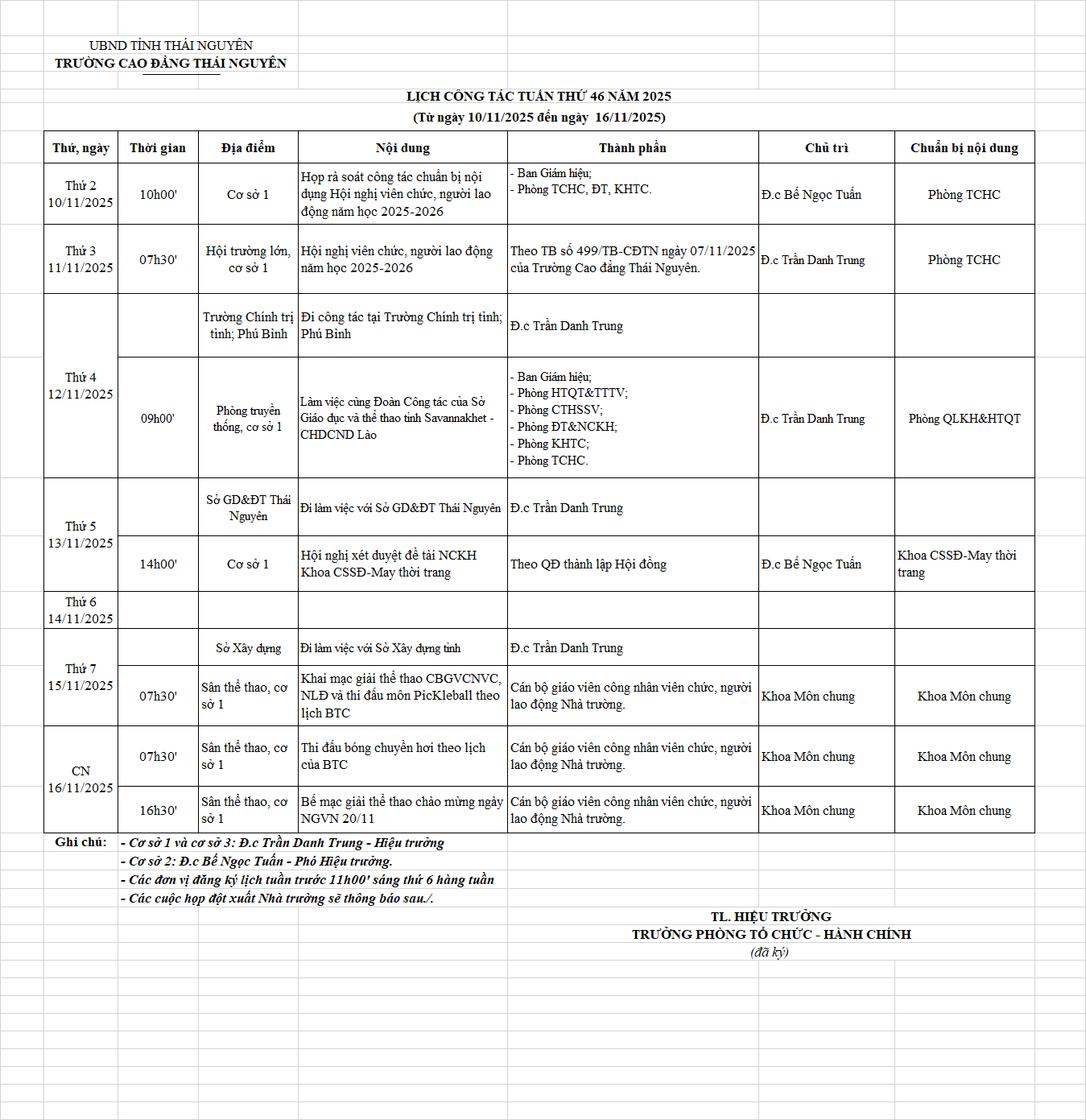 Lịch công tác tuần 46 năm 2025