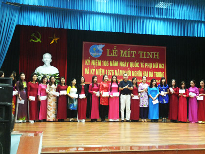 Cũng trong buổi mít tinh, nhà trường cũng trao quà cho 190 chị em đạt danh hiệu phụ nữ 2 giỏi, ban tổ chức các cuộc thi cầu lông, thi nấu ăn cũng trao các giải thưởng cho các tổ công đoàn tham gia các hoạt động vừa qua chào mừng ngày 8-3.