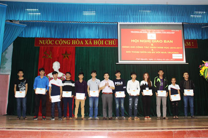 Ảnh : Thày giáo Nguyễn Ngọc Sáng-Phó bí thư Đảng uỷ, Phó hiệu trưởng trao giấy khen cho SV khoá 12.