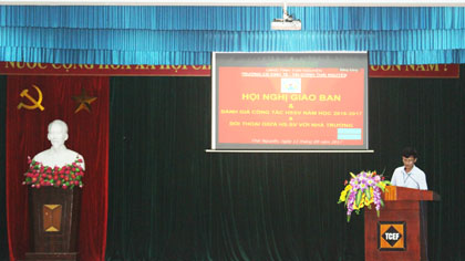 Ảnh: Thày giáo Chu Mạnh Cường-Trưởng phòng Công tác HSSV báo cáo tổng kết năm học 2016-2017 của khối HSSV.