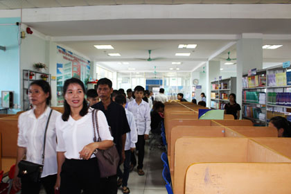Ảnh : Các đoàn thăm thư viện và phòng đọc tự chọn.