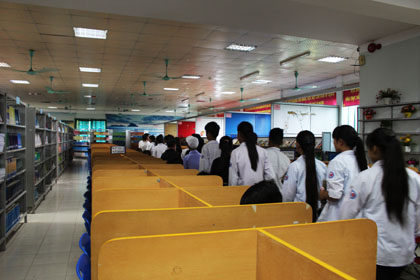 Ảnh : Các em học sinh thăm phòng đọc tự chọn.