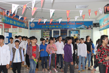 Ảnh : Các em học sinh thăm các trung tâm đào tạo ngoại ngữ.