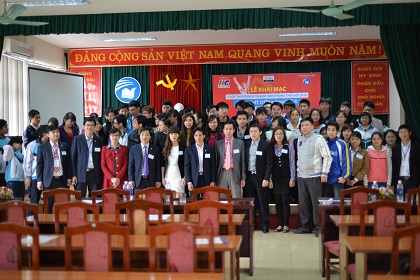 Ảnh: Các thí sinh dự thi chụp ảnh với ban tổ chức