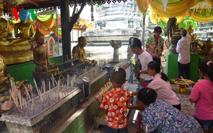 Trong dịp lễ Songkran này, toàn bộ người dân Thái Lan được nghỉ. Từ sáng sớm, các gia đình đã rủ nhau lên chùa thắp hương, lễ phật, cầu cho gia đình năm mới gặp nhiều may mắn. Các phật tử xếp hàng lần lượt, thành kính cầm chiếc gáo nhỏ rồi múc hương thơm rưới lên tượng Phật. Theo thứ tự trong gia đình, người lớn làm trước rồi tới bậc con, cháu.