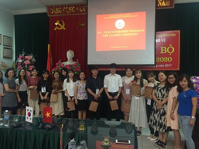 Trong 02 ngày trải nghiệm văn hoá Việt Nam tại TCEF, đoàn thực tập sinh ngoài những công tác chính là dự giảng tại các lớp học tiếng Hàn Quốc tại Trung tâm Đào tạo và Tư vấn Du học Hàn Quốc, Đoàn đã tham gia rất nhiều các hoạt động trong chương trình trải nghiệm văn hoá Việt Nam như: tham dự lớp học tiếng Việt ; thưởng thức một số món ăn đặc sản của Việt Nam như: bún, phở,… ; đi chợ truyền thống ; tham quan Bảo tàng Văn hoá các Dân tộc Việt Nam tỉnh Thái Nguyên. Sự đón tiếp nồng nhiệt và chu đáo của các thầy cô giáo, học sinh Nhà trường đã mang lại những kỉ niệm sâu sắc với toàn thể các thành viên trong đoàn Thực tập sinh, đây đã là khoá Thực tập sinh thứ 5 (K5) của Đại học Catholic Daegu, đánh dấu sự phát triển ngày càng sâu rộng giữa CU và TCEF. Và theo như chương trình thực tập và trải nghiệm văn hoá Việt Nam thì ngày 19/7/2017, đoàn thực tập sinh sẽ tham quan lăng chủ tịch Hồ Chí Minh và Hồ Hoàn Kiếm, Văn Miếu – Quốc Tử Giám – những danh lam, di tích nổi tiếng của Việt Nam. Hi vọng, chuyến đi thực tế và trải nghiệm văn hoá Việt Nam lần này sẽ mang lại nhiều kỷ niệm quý giá và khó quên đối với những sinh viên Hàn Quốc này.