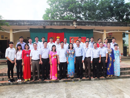 Ảnh : Đoàn công tác nhà trường chụp ảnh lưu niệm với các lãnh đạo UBND Huyện Võ Nhai, lãnh đạo UBND xã Thần Sa và tập thể giáo viên trường PT dân tộc bán trú THCS Thần Sa.