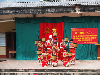 Chương trình " Chung tay hỗ trợ phát triển giáo dục vùng cao" của nhà trường đã thu được kết quả tốt đẹp thông qua phát biểu của lãnh đạo UBND huyện Võ Nhai và tập thể thày và trò trường THCS xã Thần Sa.