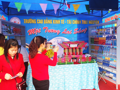 Ảnh : Khách tham quan và chụp ảnh các ấn phẩm của trường.