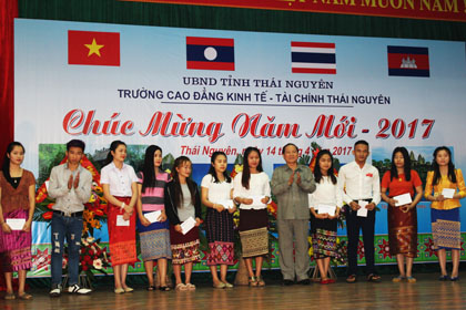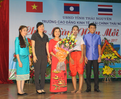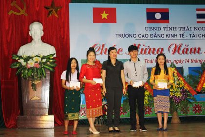 Đến dự buổi mít tinh có đồng chí Nguyễn Quang Huân-Phó trưởng phòng đoàn thể ban dân vận tỉnh uỷ Thái Nguyên, đồng chí Nguyễn Doãn Kình-chủ tịch hội hữu nghị Việt-Lào tỉnh Thái Nguyên, đồng chí Hoàng Sơn-Phó bí thư thường trực huyện uỷ huyện Đinh Hoá, đồng chí Đặng Thị Kim Oanh-Phó giám đốc Sở Ngoại vụ tỉnh Thái Nguyên, đồng chí thượng tá Dương Đức Thắng-Phó trưởng phòng an ninh chính trị nội bộ CA tỉnh Thái Nguyên cùng các đồng chí lãnh đạo các tổ chức chính trị, đoàn thể của thành phố thái nguyên. Về phía nhà trường có các đồng chí Phạm Chí Cường-Phó bí thư Đảng uỷ, phó hiệu trưởng, đồng chí Lê Kim Anh-UV ban thường vụ, phó hiệu trưởng, các đồng chí lãnh đạo các phòng, khoa, trung tâm cùng toàn thể các lưu sinh viên của ba nước bạn Lào, Thái Lan, Campuchia hiện đang theo học tại trường. Cũng tại buổi mít tinh này, các đồng chí đại biểu đã tặng nhà trường những bó hoa tươi thắm, bày tỏ sự quan tâm sâu sắc tới sự nghiệp đào tạo của nhà trường nói chung và sự mở rộng hợp tác đào tạo với các nước trong khu vực ASEAN nói riêng. Nhân dịp Tết cổ truyền của các nước Lào, Thái Lan và Campuchia, nhà trường đã tuyên dương, trao thưởng cho các lưu sinh viên đạt kết quả xuất sắc trong học tập và rèn luyện, trao thưởng cho các lớp sinh viên có thành tích cao trong các hoạt động TDTT vừa qua. Nhìn chung buổi mít tinh đã diễn ra trong không khí đầm ấm, vui tươi tràn đầy tình hữu nghị giữa các dân tộc Việt Nam, Lào, Thái Lan và Campuchia, động viên và khích lệ các lưu sinh viên trong những ngày đón xuân xa xứ.
