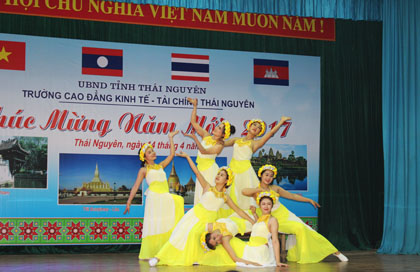 Trường Cao dẳng Kinh tế-Tài chính Thái Nguyên tổ chức mít tinh trọng thể đón tết cổ truyền các dân tộc Lào, Thái Lan, Campuchia.