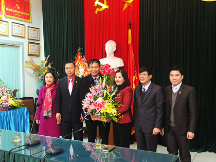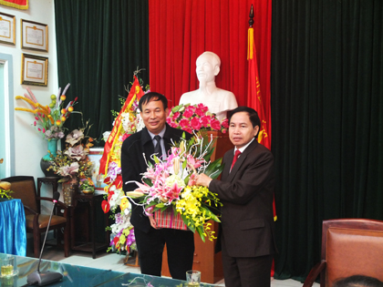 Ảnh : Đồng chí Nguyễn Công Dương thay mặt nhà trường tặng hoa đồng chí Dương Ngọc Long.