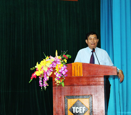 Ảnh : Thày giáo Nguyễn Công Dương-Hiệu trưởng phát biểu nhắc nhở, động viên các tân cử nhân.
