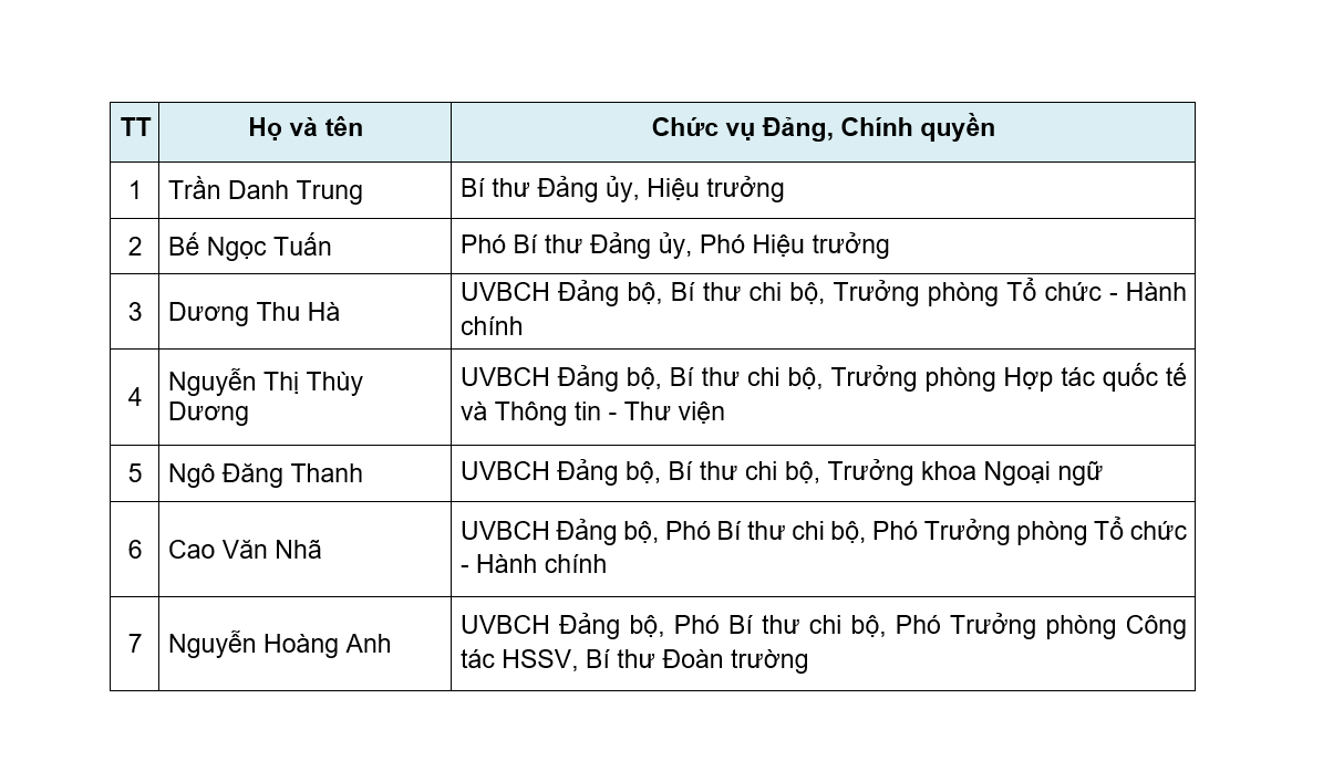 Danh sách Ban chấp hành Đảng bộ Trường Cao đẳng Thái Nguyên, nhiệm kỳ 2025-2030