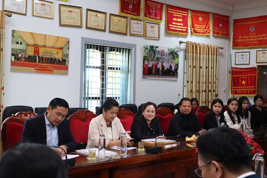 Về phía Trường Cao đẳng Thái Nguyên, tham dự buổi làm việc có Thầy Bế Ngọc Tuấn – Phó Hiệu trưởng, cùng đại diện các đơn vị liên quan và các em lưu học sinh Lào tỉnh Hủa Phăn đang học tập tại trường.