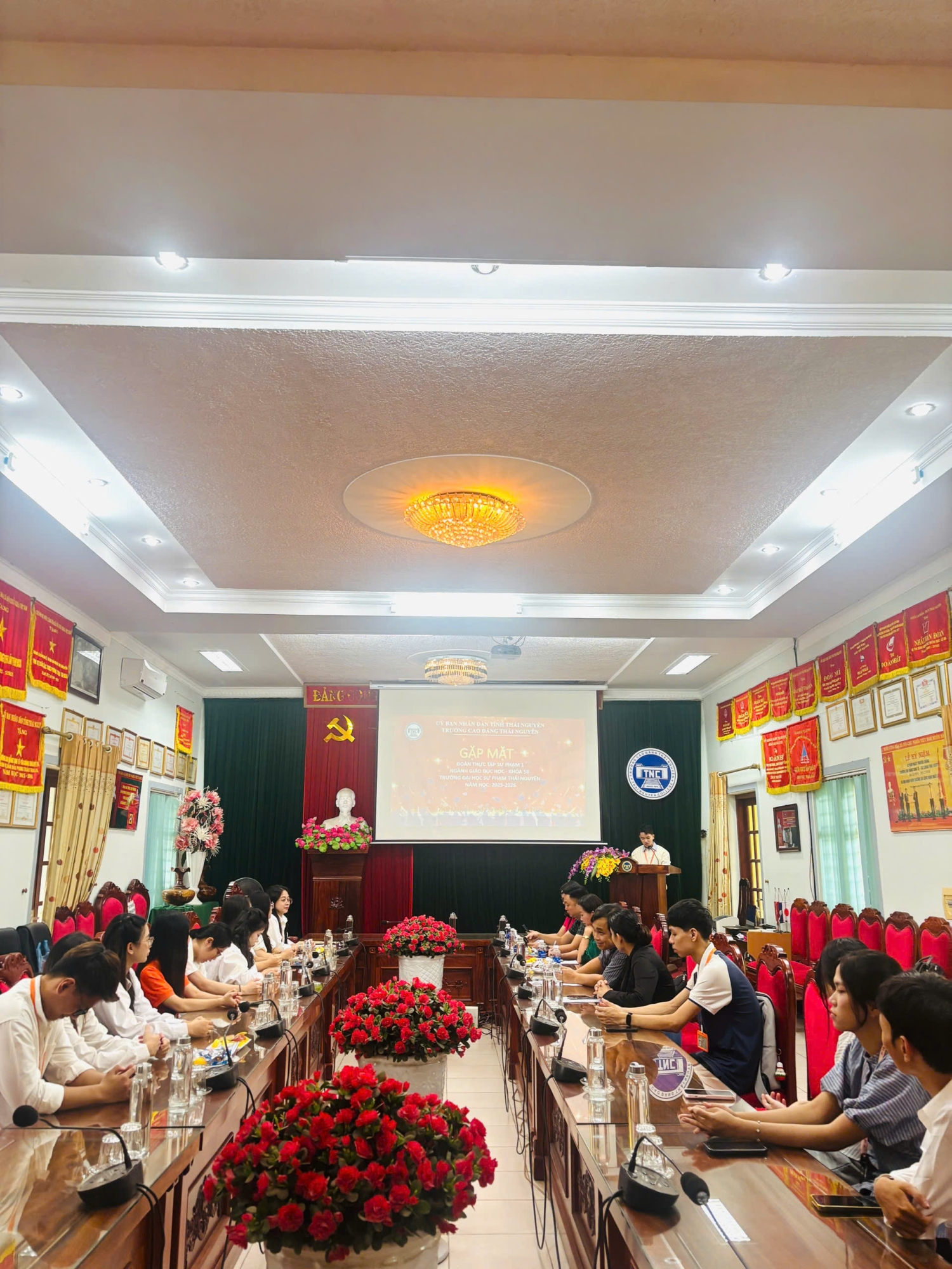 Thái Nguyên, ngày 28/10/2025 – Trường Cao đẳng Thái Nguyên đã tổ chức thành công Buổi Gặp mặt Đoàn Thực tập Sư phạm 1 (TTSP 1) theo đúng kế hoạch, chính thức khởi động giai đoạn thực tập nghề nghiệp quan trọng cho sinh viên ngành Giáo dục học.