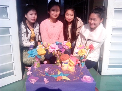 Các em HSSV bên những tác phẩm mới hoàn thành.