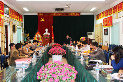 Tiếp đón và làm việc với đoàn cán bộ lãnh đạo Sở GD-ĐT Thái Nguyên, về phí nhà trường có các đồng chí : Phạm Chí Cường-Phó bí thư Đảng uỷ, Phó hiệu trưởng, đồng chí Lê Kim Anh-Phó hiệu trưởng và các đồng chí lãnh đạo các khoa, phòng, trung tâm trong trường. Mở đầu buổi làm việc, đồng chí Nguyễn Mạnh Sơn-PGĐ Sở đã phát biểu chúc mừng nhà trường nhân dịp đầu xuân năm mới và chúc nhà trường mở được nhiều ngành nghề đào tạo để ngày càng thu hút được nhiều học sinh, sinh viên theo học. Sau khi làm việc tại nhà truyền thống, các tổ công tác của Sở đã đi thị sát cơ sở vật chất đảm bảo cho công tác đào tạo, duyệt các chương trình đào tạo và kiểm tra đội ngũ giảng viên, các nhân sự đảm bảo cho việc mở 3 mã ngành nói trên.