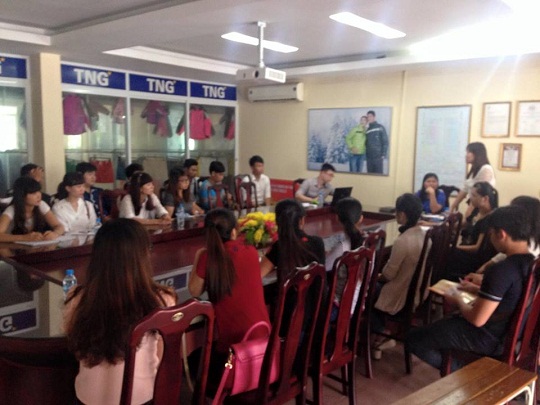 Được sự tiếp đón rất nhiệt tình của Công ty TNG – Chi nhánh Sông Công 3, các em sinh viên được giới thiệu và hướng dẫn cụ thể, chi tiết về từng nghiệp vụ Tài chính doanh nghiệp, được tham khảo các kế hoạch thực tế tại phòng kế toán. Hơn nữa, các em sinh viên còn được được trao đổi trực tiếp bằng các câu hỏi liên quan đến các nghiệp vụ tài chính với anh Thanh - Kế toán trưởng TNG-chi nhánh Sông Công 3.