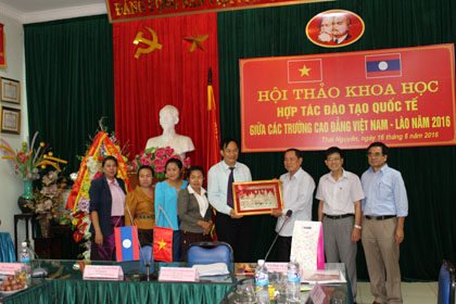 Trường TCEF tặng quà cho các đại biểu của Lào dự hội thảo.