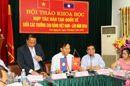 Mở đầu hội thảo, đồng chí Nguyễn Công Dương-Bí thư Đảng uỷ, hiệu trưởng nhà trường đã phát biểu chào mừng và nhấn mạnh những nội dung cần tập trung đề cập trong hội thảo. Đồng chí Phạm Chí Cường-Phó bí thư Đảng uỷ, Phó hiệu trưởng nhà trường đã có tham luận về khung chương trình đào tạo bậc Cao đẳng của Việt Nam, so sánh với khung chương trình của Lào và đề xuất chương trình đào tạo cho sinh viên Lào khi thực hiện chương trình hợp tác. Các đồng chí đại biểu, đặc biệt là các đồng chí lãnh đạo các trường CĐ của hai nước đã thảo luận sâu rộng về tham luận nói trên và đề xuất nhiều ý kiến quý báu cho chương trình hợp tác đào tạo giữa các trường CĐ nghề của hai nước Việt-Lào. Cuối hội thảo, lãnh đạo trường CĐ Kinh tế-tài chính Thái Nguyên đã thực hiện ký kết các thoả thuận hợp tác giữa nhà trường với 6 trường CĐ nghề của CHDCND Lào, lễ ký kết diễn ra tốt đẹp trước sự chứng kiến của các đại biểu cấp trên cũng như lãnh đạo các trường.