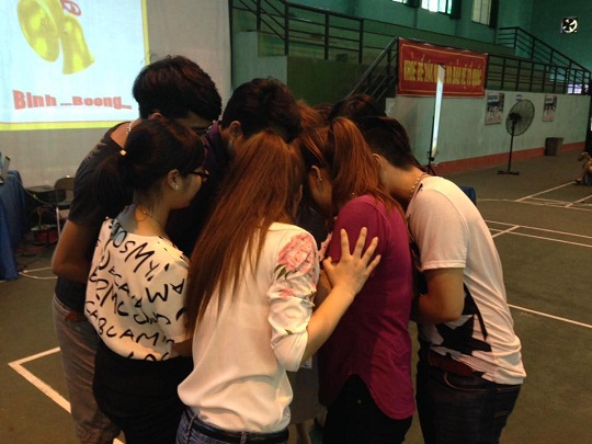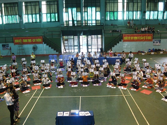 (Ảnh: Hình ảnh một đội thi đang thảo luận để tìm giải pháp xử lý tình huống)